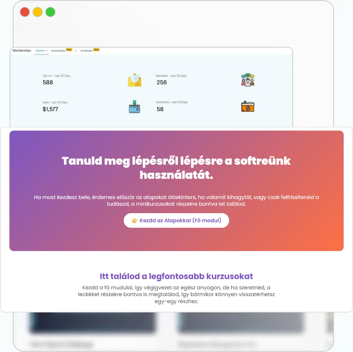 Egy felületen kínálhat ingyenes tartalmat és értékesíthet fizetős képzéseket, átláthatóan kezelve az ajánlatokat és hozzáféréseket.