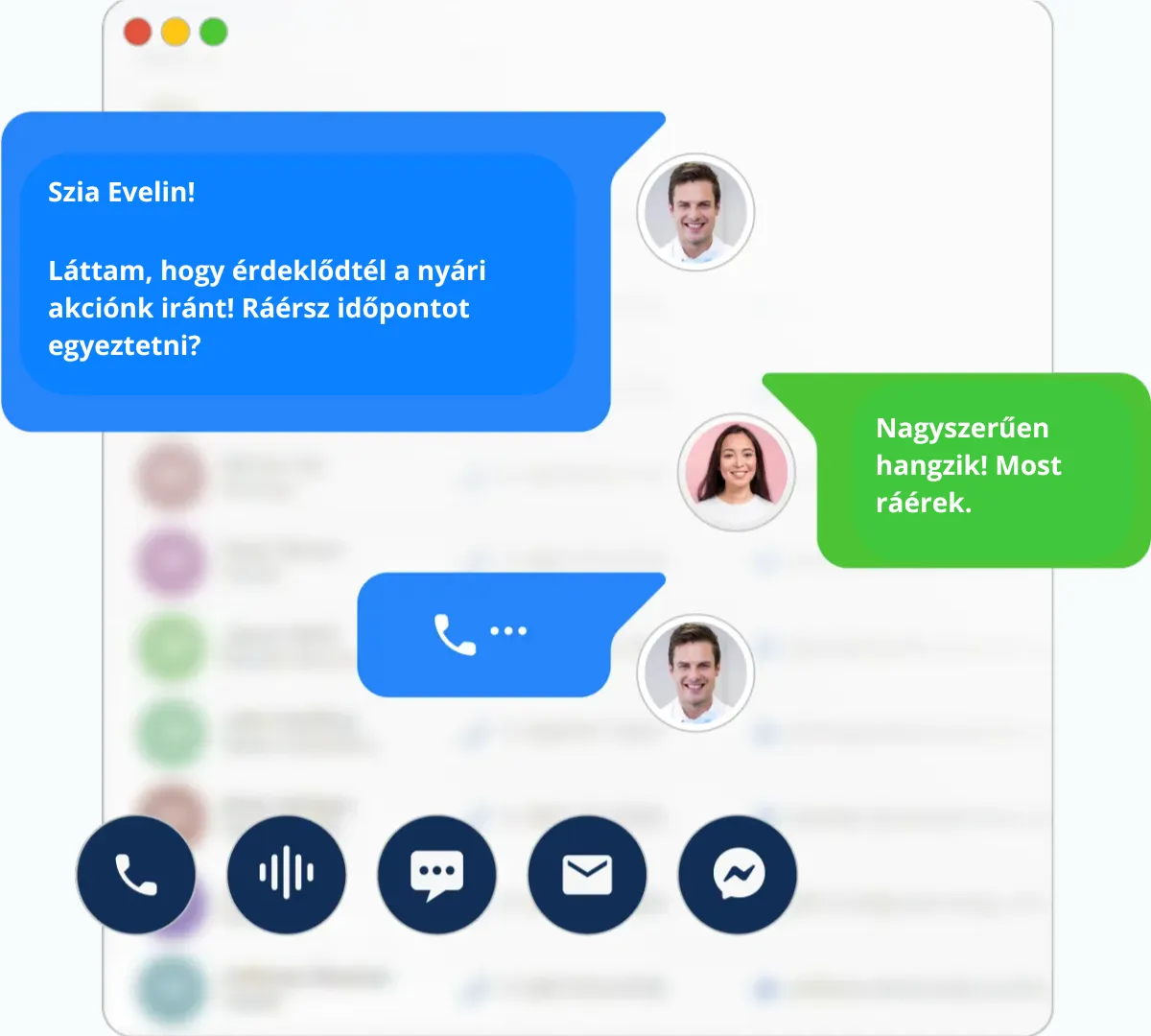 Telefonhívás, hangüzenet, SMS/MMS, e-mail, Facebook Messenger — mindent összekötünk, hogy ne maradjon válasz nélkül.